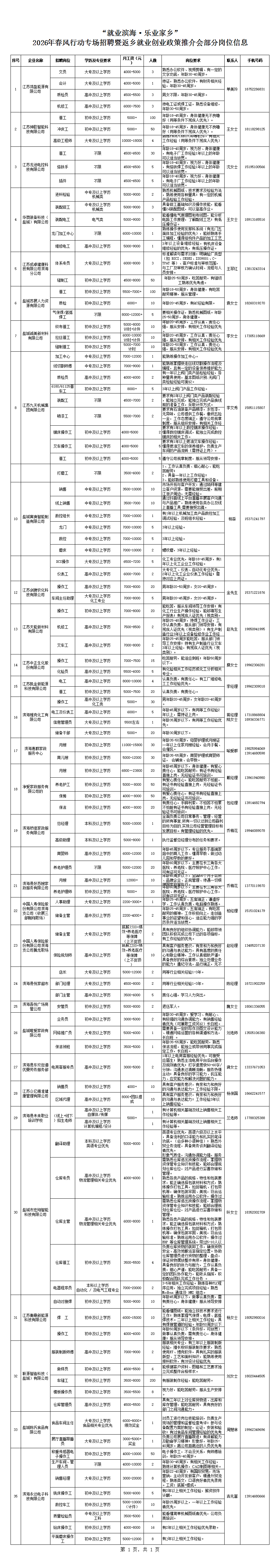 为扎实做好企业用工服务工作,搭建招聘求职平台,畅通招聘求职渠道,帮助劳动者返乡留乡就业,定于2026年2月19日-20日(正月初三至初四):上午9:00—11:30,下午2:30—5:00,在滨海人力资源产业园(港城路666号,融媒体中心大楼辅二楼)举办“就业滨海·乐业家乡”2026春风行动专场招聘暨返乡就业创业政策推介会,欢迎广大用工单位和求职者前来招聘洽谈。