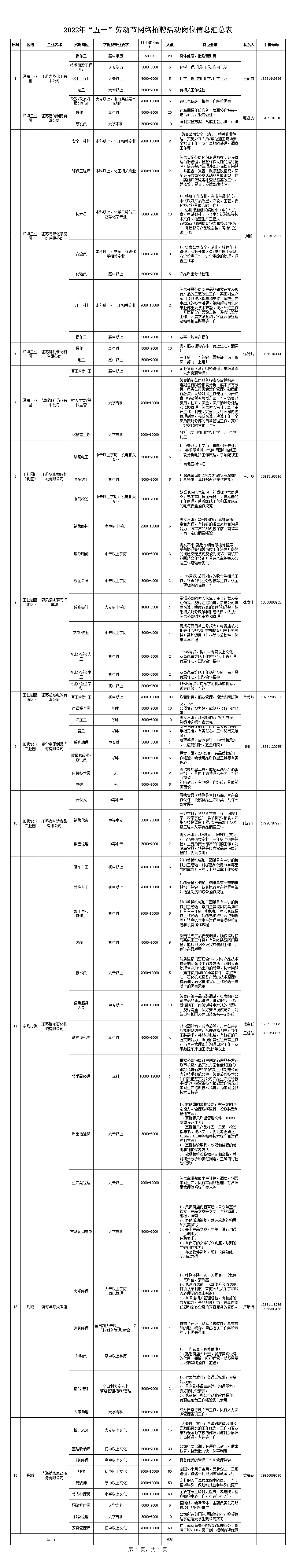 2022年“五一”劳动节网络招聘活动岗位信息
